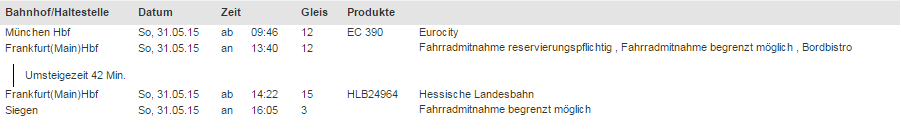 Meine Reiseplanung für die Hinfahrt sah wie folgt aus: