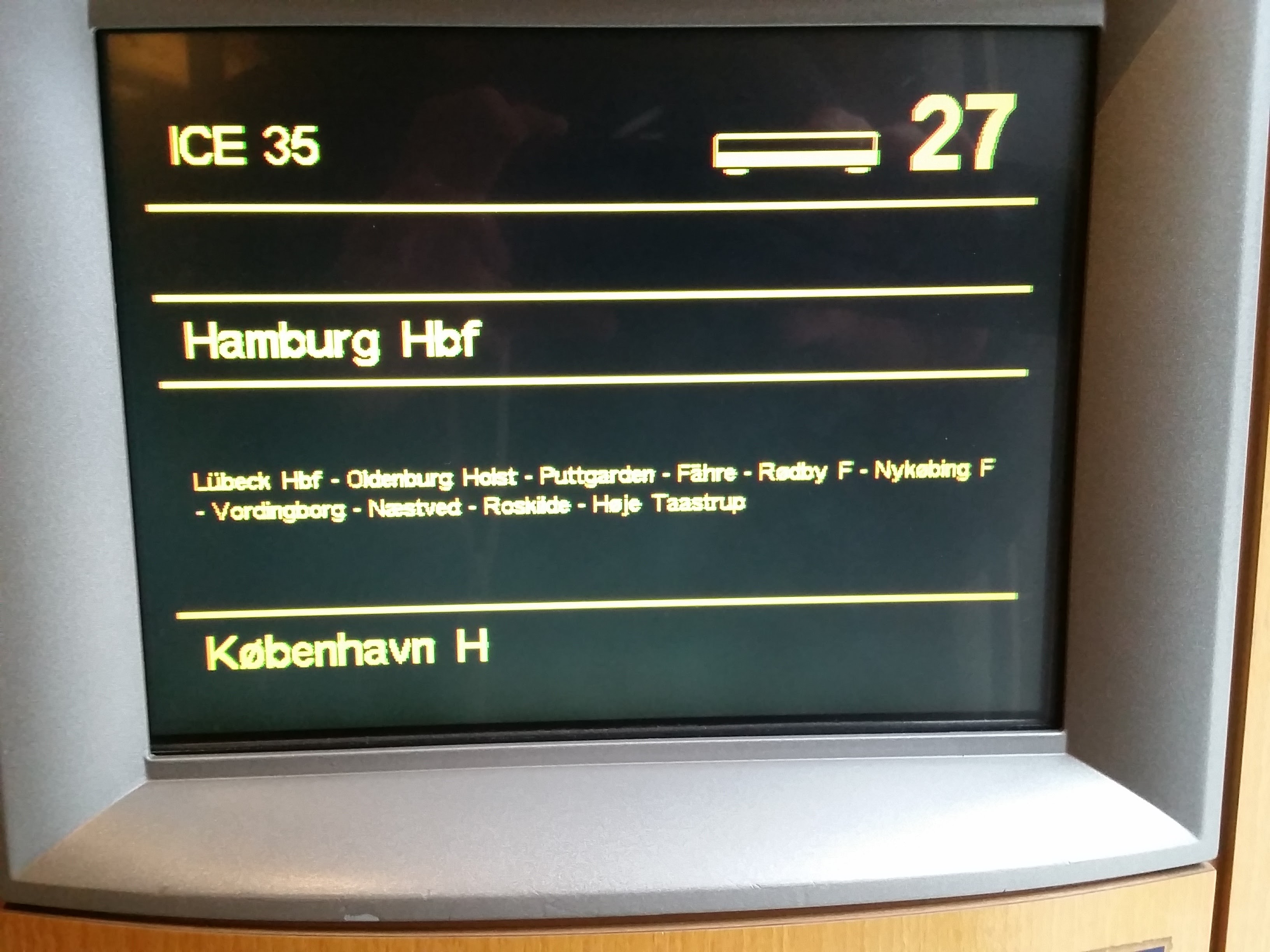 Kurz bevor die Fähre den Hafen erreicht hatte durfte man wieder in den ICE einsteigen. In Dänemark wurde der ICE sehr voll, da die Dänen diesen anscheinend gerne nutzen unseren Zug :-)