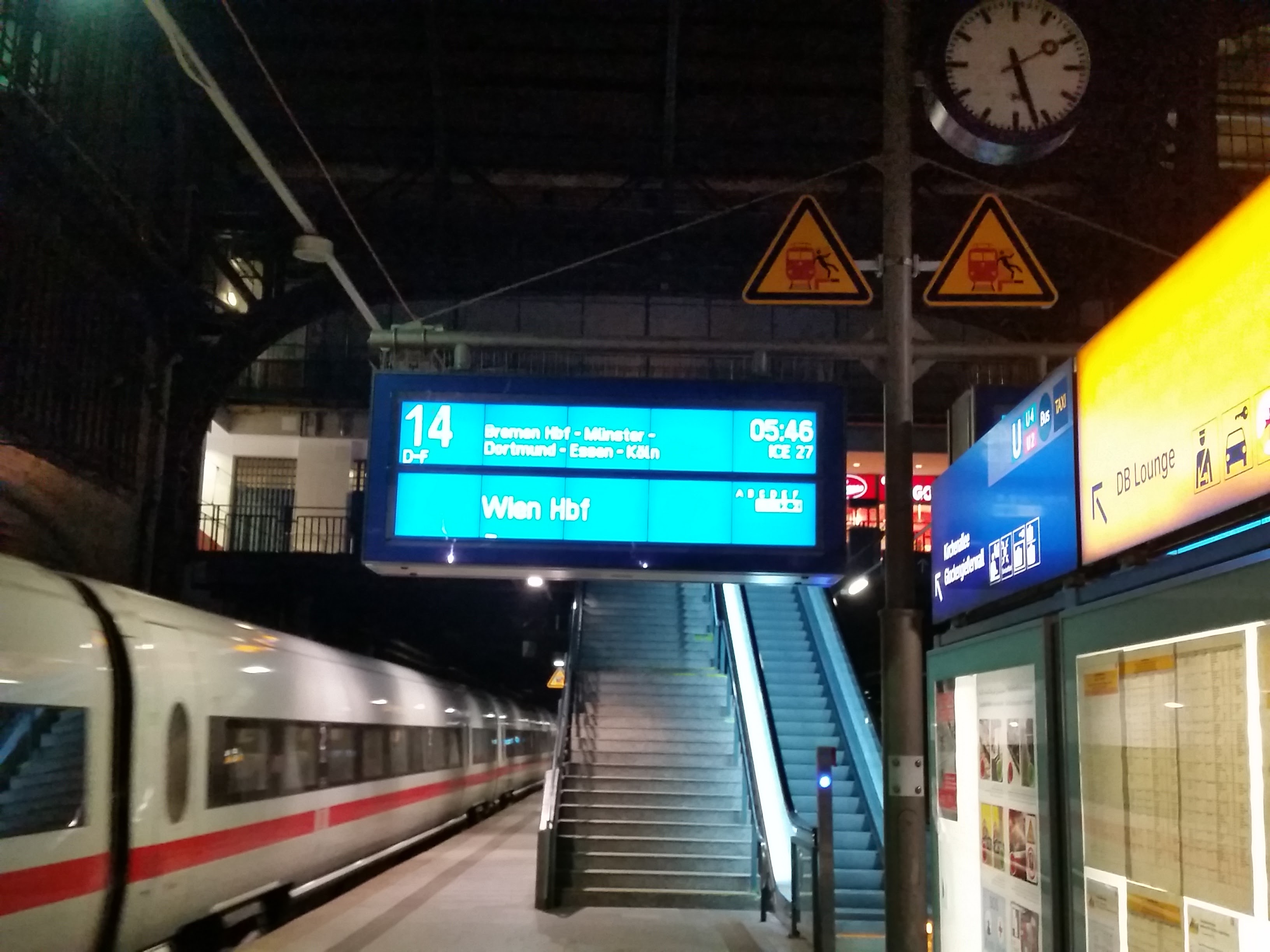 Ca. 45 Minuten vor Abfahrt meines Zuges, ICE 27 Richtung Wien machte ich mich auf den Weg Richtung >Bahnsteig und kurze Zeit später wurde der ICE auch schon bereit gestellt da dieser erst im Hamburger Hbf beginnt.
