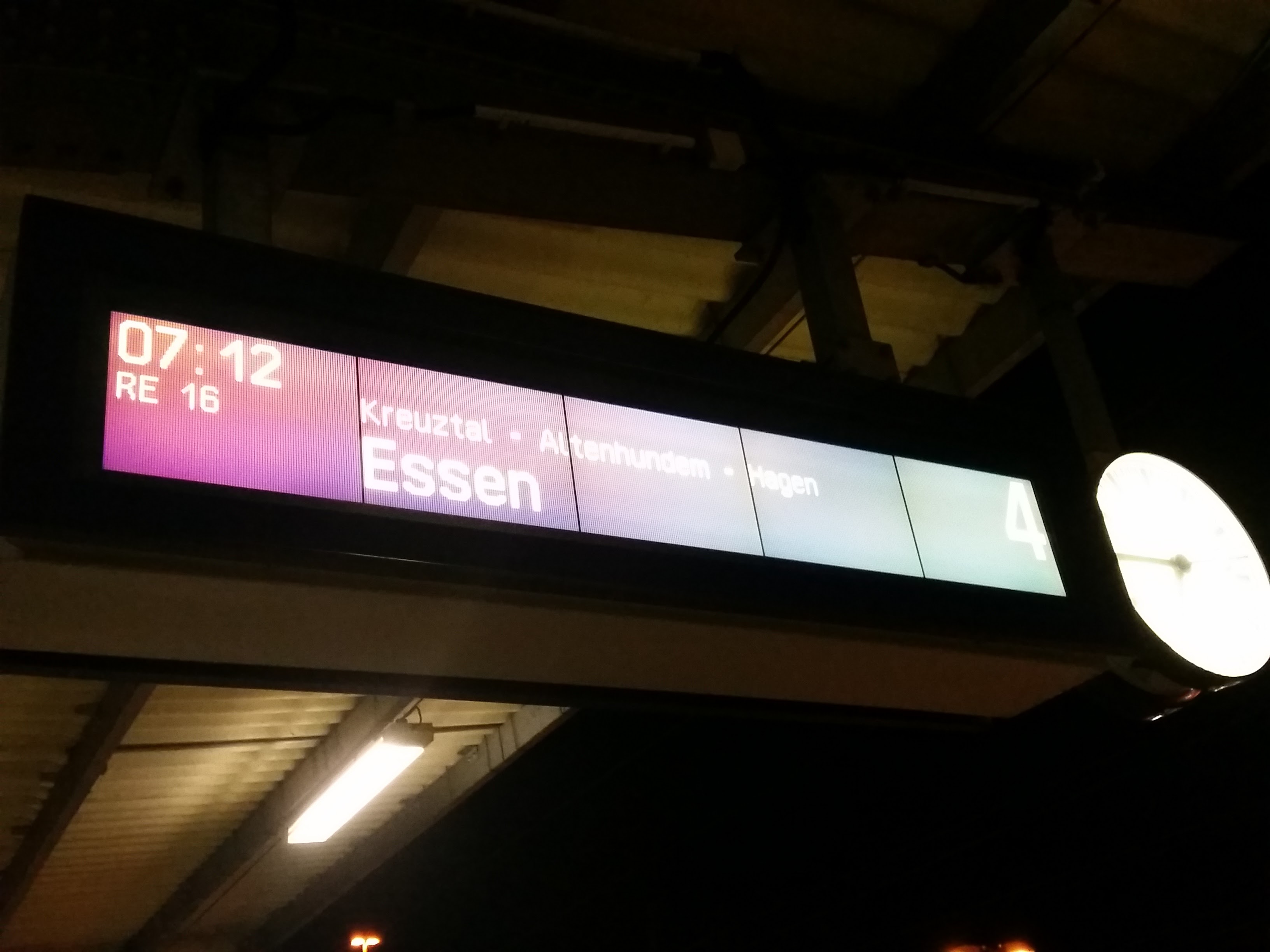In Hagen angekommen wagte ich dann einen Blick auf die Abfahrtstafel in der Bahnhof "ca. 20 Minuten später". Naja, eigentlich kein Problem ich hatte ja in Hamburg genug Zeit zum umsteigen.
